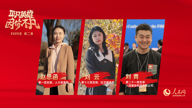 經(jīng)過入圍候選人在線上的精彩展示角逐,根據(jù)人民網(wǎng)黨委和管理層成員,黨支部書記、部門負(fù)責(zé)人代表,以及黨支部委員、黨員和群眾代表等30位評委現(xiàn)場打分,最終,來自第一黨支部、人力資源部的人事專員趙思函,第十三黨支部、社交媒體部短視頻組主編劉雲(yún),第二十一黨支部、人民視聽子公司視頻總監(jiān)劉青三位同志分別榮獲人民網(wǎng)2022年度第二季“平凡英雄”服務(wù)獎、創(chuàng)新獎和奮斗獎。同時,杜明明、燕帥、景玥、許維娜、楊伊、陳思、王亞微等七位同志獲得“平凡英雄”入圍獎。