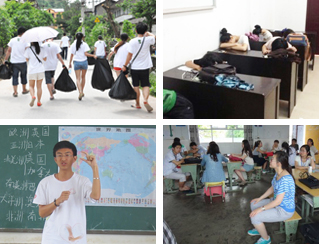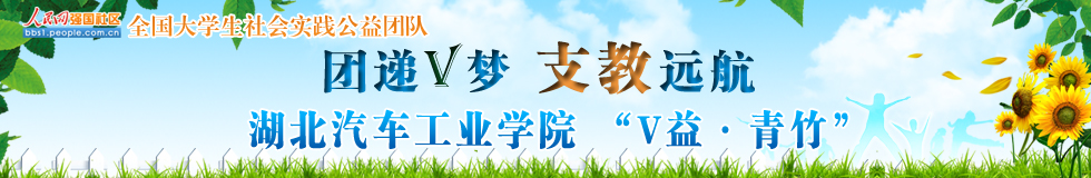 “V益·青竹”支教團隊由9名本科生組成。他們利用兩周暑假時間到湖北省竹溪縣蔣家堰鎮(zhèn)中原小學,開展以“團遞V夢 支教遠航”的主題的實踐活動。自7月9日開始,從“一米陽光暖庸巴”主題愛心募捐和義賣、“支教路上共成長”主題支教、“我的V夢想”主題畫展暨文藝匯演、和“團遞V夢 支教遠航”主題宣講等四個方面開展實踐活動。團隊已經(jīng)在六堰廣場舉行了“一米陽光暖庸巴”報紙義賣和愛心募捐活動,將籌集到的善款和物資捐贈給中原小學。支教課堂上,志愿者們教授孩子們英語、華爾茲、電子琴、繪畫等課程,開設班級也由計劃中的一個班擴展到三個班。
