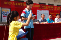7月10日上午,湖北汽車工業(yè)學院“V益·青竹”暑期愛心支教團的大學生們在蔣家堰鎮(zhèn)中原小學舉行愛心捐贈活動。湖北汽車工業(yè)學院副院長閔祖?zhèn)魍、縣教育局副局長周躍忠同志以及相關領導都趕來支持。