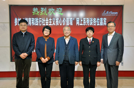 16日上午,北京市房山區(qū)委常委、宣傳部部長趙佳琛,中國人民大學(xué)新聞學(xué)院黨委副書記羅建暉,國家電網(wǎng)公司思想政治工作部副主任方國元,北京市海淀區(qū)人民法院副院長宋魚水,中國倫理學(xué)會名譽會長、中國社科院研究員陳瑛作為第一場訪談的嘉賓,在人民網(wǎng)強(qiáng)國論壇與網(wǎng)友進(jìn)行在線交流。