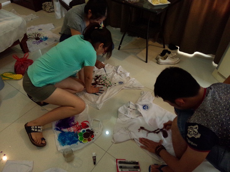 團隊成員在自己的T恤上動手繪制“手”護紅樹林圖樣