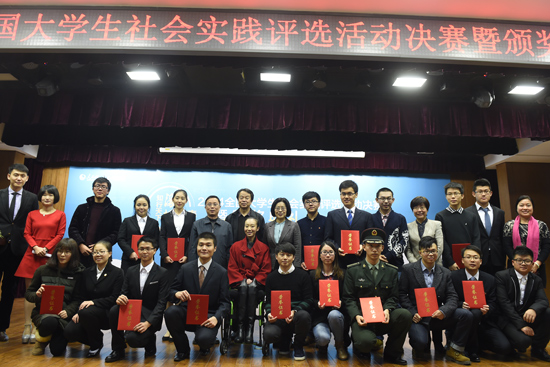 人民網(wǎng)北京12月5日電 (譚琳 蔡靜)12月5日,由人民網(wǎng)強(qiáng)國(guó)社區(qū)聯(lián)合共青團(tuán)中央學(xué)校部、人民日?qǐng)?bào)政文部舉辦的“知行天下 激揚(yáng)青春——第三屆全國(guó)大學(xué)生社會(huì)實(shí)踐評(píng)選”決賽暨頒獎(jiǎng)典禮在北京林業(yè)大學(xué)舉行。吉林大學(xué)、天津大學(xué)、溫州醫(yī)科大學(xué)等五支團(tuán)隊(duì)過關(guān)斬將,從全國(guó)五千多參賽團(tuán)隊(duì)中脫穎而出,獲得一等獎(jiǎng)。