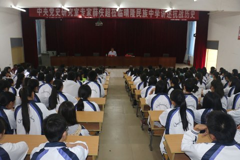 人民網(wǎng)9月16日電(鄧志慧 李小煒 于紅林 喬外)由中央網(wǎng)信辦、中央黨史研究室指導(dǎo),人民網(wǎng)聯(lián)合8省區(qū)市共同主辦的“尋找歷史記憶 緬懷抗戰(zhàn)英烈——紀(jì)念抗日戰(zhàn)爭勝利70周年系列活動”第四站走進(jìn)貴州!包h史專家進(jìn)校園”是此次系列活動的重要組成部分,16日上午,著名黨史專家、中央黨史研究室宣教局原副局長薛慶超在貴州省晴隆民族中學(xué)為該校師生上了一堂生動的抗戰(zhàn)歷史課,得到廣大師生一致好評。
