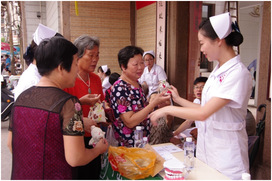 中山大學新華學院醫(yī)啟航社會實踐隊向村民發(fā)放驅(qū)蚊包