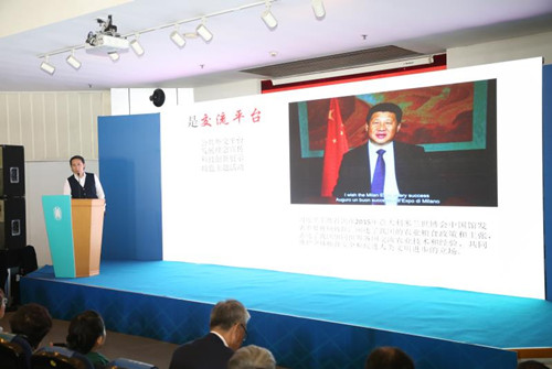 中國國際貿(mào)易促進(jìn)委員會世博事務(wù)處處長阮煒作主旨演講
