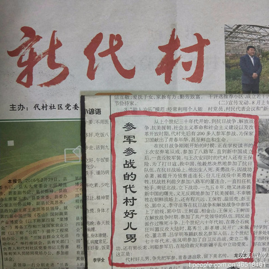 前后200多人參軍參戰(zhàn),用青春譜寫(xiě)戰(zhàn)歌,用奉獻(xiàn)報(bào)效祖國(guó)。這是代村人的驕傲,更是我們國(guó)家的驕傲。
