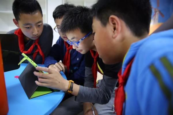 幾位小學生正在用平板電腦設(shè)計作品(圖片來源:半月談)