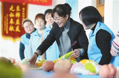 職業(yè)培訓(xùn)學(xué)校老師在給學(xué)員講解育嬰知識(shí)。(來源:新華社記者 王曉 攝)