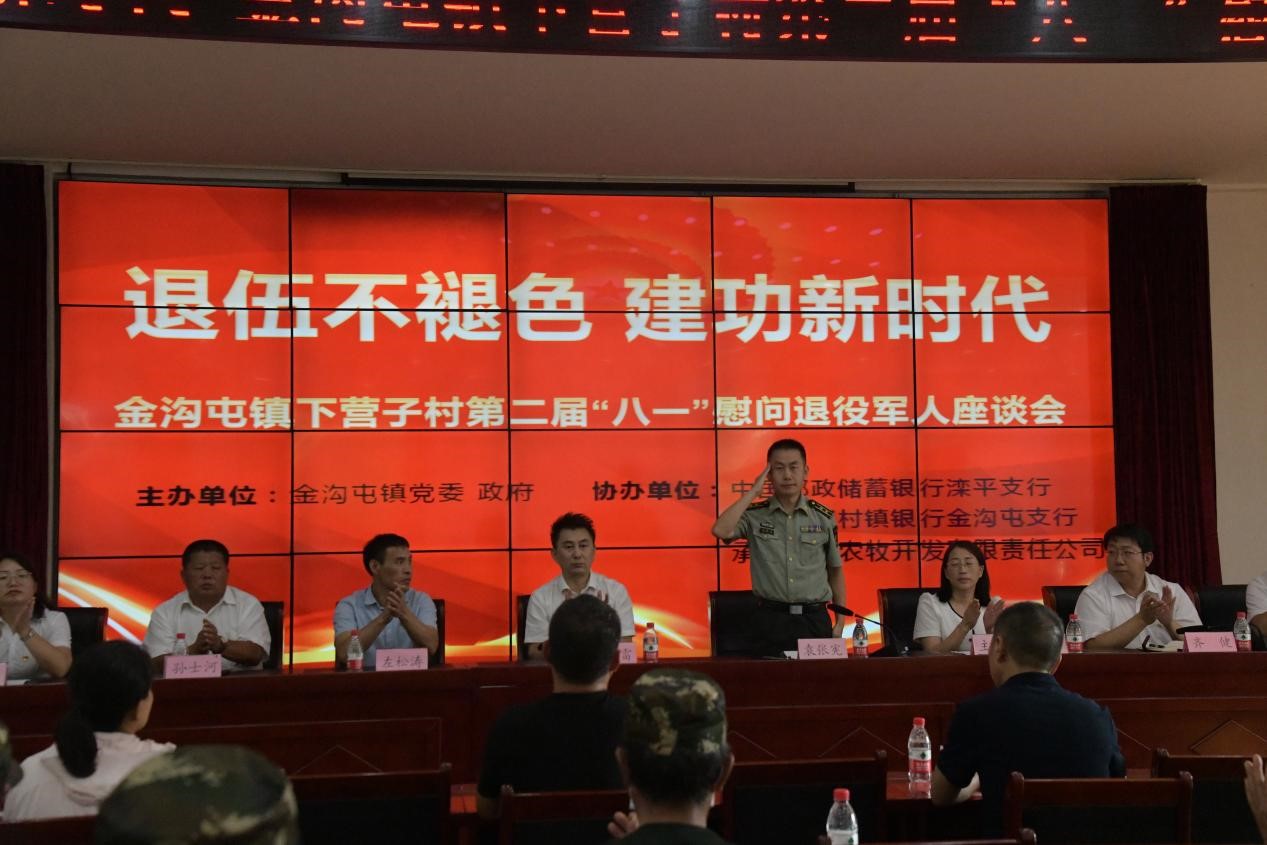 8月1日下午,灤平縣金溝屯鎮(zhèn)下營子村聯(lián)合愛心企業(yè)中國郵政儲(chǔ)蓄銀行灤平支行、灤平盛陽村鎮(zhèn)銀行金溝屯支行和承德久財(cái)農(nóng)牧開發(fā)有限責(zé)任公司共同舉辦了“退伍不褪色 建功新時(shí)代”第二屆“八一”慰問退役軍人座談會(huì)。活動(dòng)現(xiàn)場,大家歡聚一堂,共同慶祝中國人民解放軍建軍95周年,共敘魚水深情,并為優(yōu)秀退役軍人頒發(fā)榮譽(yù)證書。 王海琦 郎朗 攝