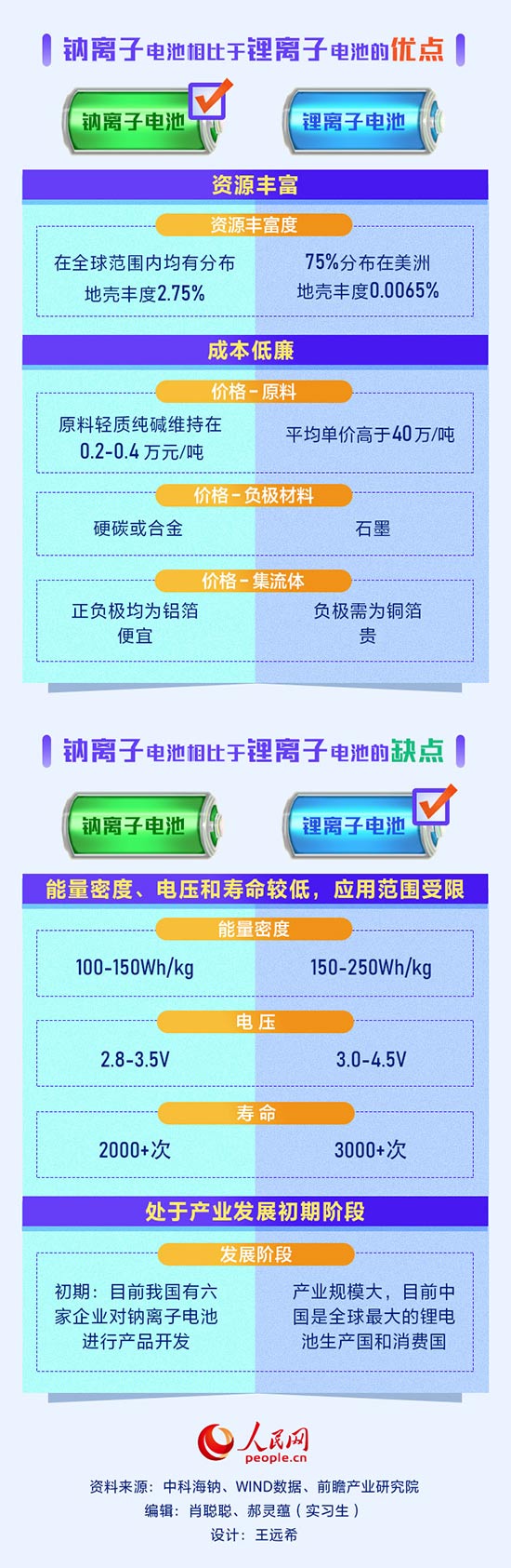數(shù)據(jù)顯示,在資源儲(chǔ)量方面,鈉資源的地殼豐度是鋰資源的423倍,并且在全球均勻分布;在成本方面,鈉離子電池的成本低廉,比磷酸鐵鋰電池可降低約30%-40%。然而,鈉離子電池的能量密度、使用壽命均低于鋰離子電池,這導(dǎo)致鈉離子電池的應(yīng)用范圍受到一定影響。