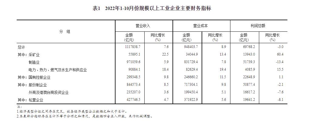 2022年1-10月規(guī)模以上工業(yè)企業(yè)主要財(cái)務(wù)指標(biāo)。 國(guó)家統(tǒng)計(jì)局官網(wǎng)截圖