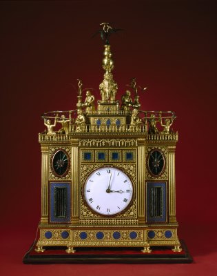 “除了基本的計時功能之外,最重要的就是它的表演功能。利用機械聯(lián)動原理,使上面裝飾的人物、鳥獸、花卉等玩藝系統(tǒng)不斷變化,表現(xiàn)各種動作!