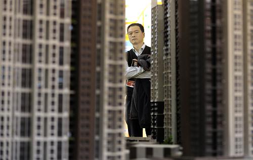 湖北省武漢市一名看房者在觀看樓盤(pán)模型。新華社記者 程敏 攝