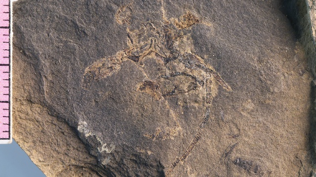 “2015年的一次普通野外踏勘工作中,我的學(xué)生代旭在一塊黑色頁巖上發(fā)現(xiàn)了一枚非常奇特的化石碎片!彼魏\娊榻B,后來經(jīng)鑒定這枚化石是在早三疊世海相地層中罕見的龍蝦化石碎片。
