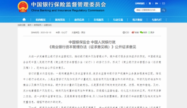 《商業(yè)銀行資本管理辦法(征求意見稿)》 中國銀保監(jiān)會官網截圖